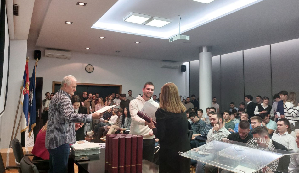 Младим колегама, дипломе о завршеним основним академским студијама, уручила је продекан за наставу, проф. др Живана Јаковљевић. У свом обраћању изразила је задовољство због присуства великог броја студената, истакавши да је додела диплома један од најдражих догађаја на факулету.