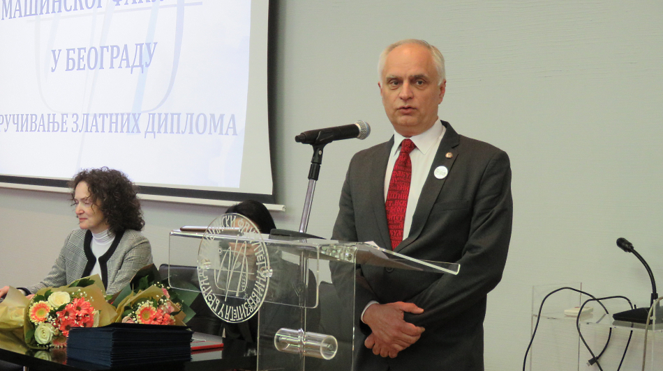 „Машински факултет има много лепих традиција, а једна од најлепших је додела златних диплома. Дочекати златну диплому представља велики успех и признање за све што сте постигли током живота и рада“, истакао је у поздравном говору декан Машинског факултета, проф. др Владимир Поповић.