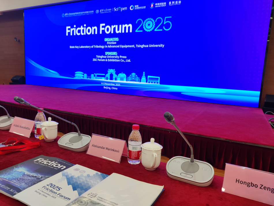 Први „Friction Forum 2025“ одржан је почетком новембра на Универзитету „Tsinghua“ у Пекингу, у организацији реномираног међународног часописа Friction и State Key Laboratory of Tribology in Advanced Equipment. Међу учесницима по позиву, био је и професор Машинског факултета др Александар Маринковић, са радом који је иазвао велико интересовање.