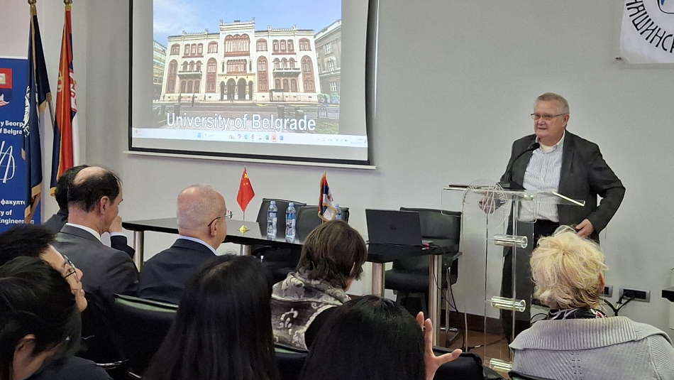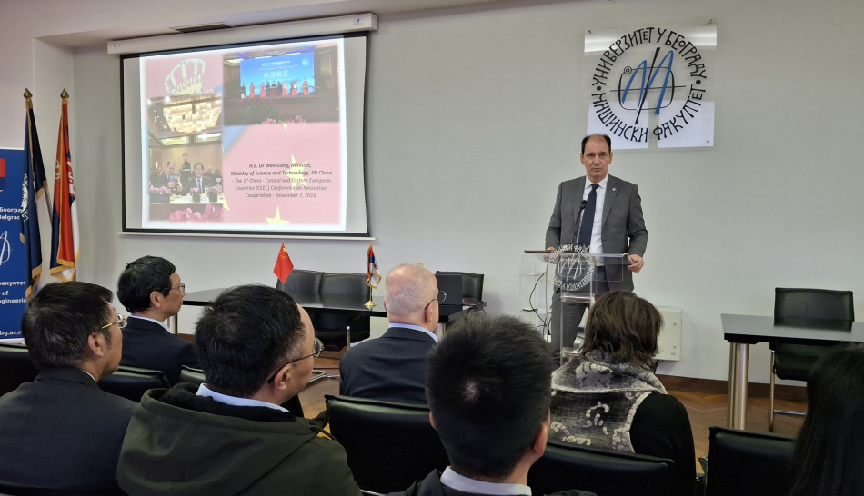 „Само у последње две године Машински факултет је угостио више значајних кинеских делегација, укључујући представнике Xi’an Jiaotong универзитетa, Универзитетa за науку и технологију Хуаџонг из Вухана, Универзитетa за технологију Анхуи и многе друге. Прошле године, Машински факултет је посетио заменик министра за науку и технологију НР Кине, господин Chen Jiachang, који је предводио делегацију високих званичника тог министарства. Ваша земља је велика, а ми смо мала земља, а то нам оставља широк простор за унапређење наше заједничке сарадње“, истакао је проф. Поповић. Он је подсетио и на своје искуство сарадње са кинеским институцијама као државни секретар у Министарству просвете, науке и технолошког развоја Републике Србије, истичући сусрете са високим кинеским званичницима у Министарству за науку и технологију, као и са званичницима кинеског Министарства за просвету.