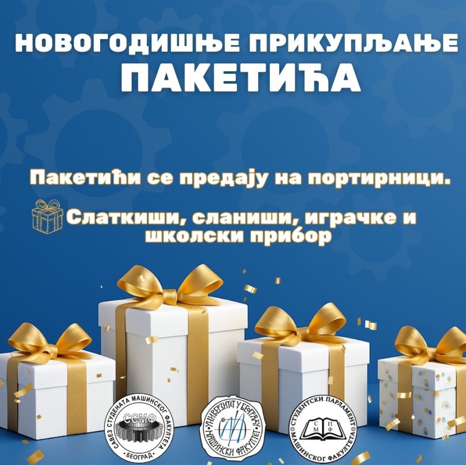 Савез студената Машинског факултета у Београду (ССМФ) и ове године организује традиционалну акцију прикупљања новогодишњих пакетића, чији је циљ да обрадује малишане из Рогачице, који живе у веома тешким финансијским условима, и унесе празничну топлину у њихове домове.
