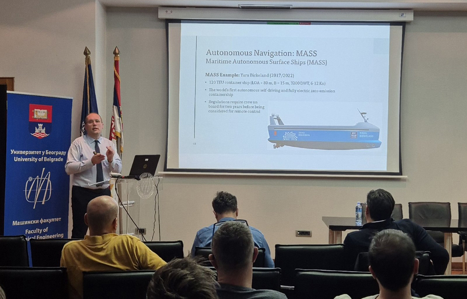 Проф. др Марко Валчић (Свеучилиште у Задру, Одељење за поморство) одржао је предавање „Од динамичког позиционирања до аутономне навигације: изазови и приступи“.