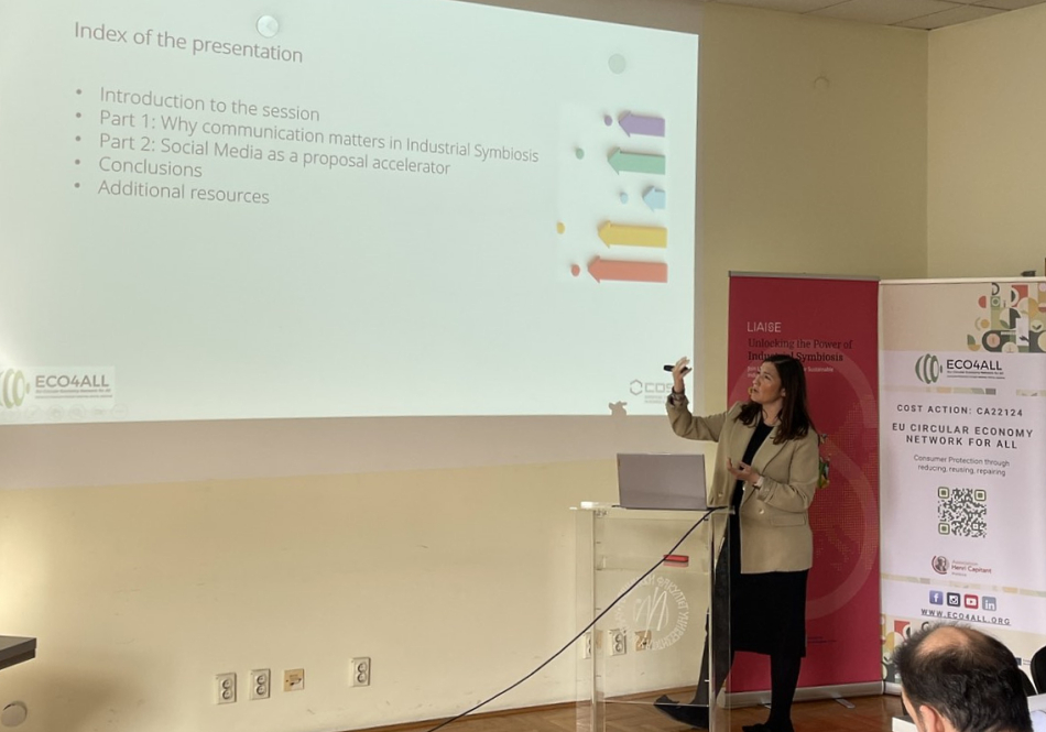Радионица је закључена предавањем др Almudene Muñoz, председавајуће COST акцијом LIAISE, о значају комуникације, улози друштвених медија у успешним пројектима индустријске симбиозе и стратегијама за креирање убедљивих и ефикасних предлога.